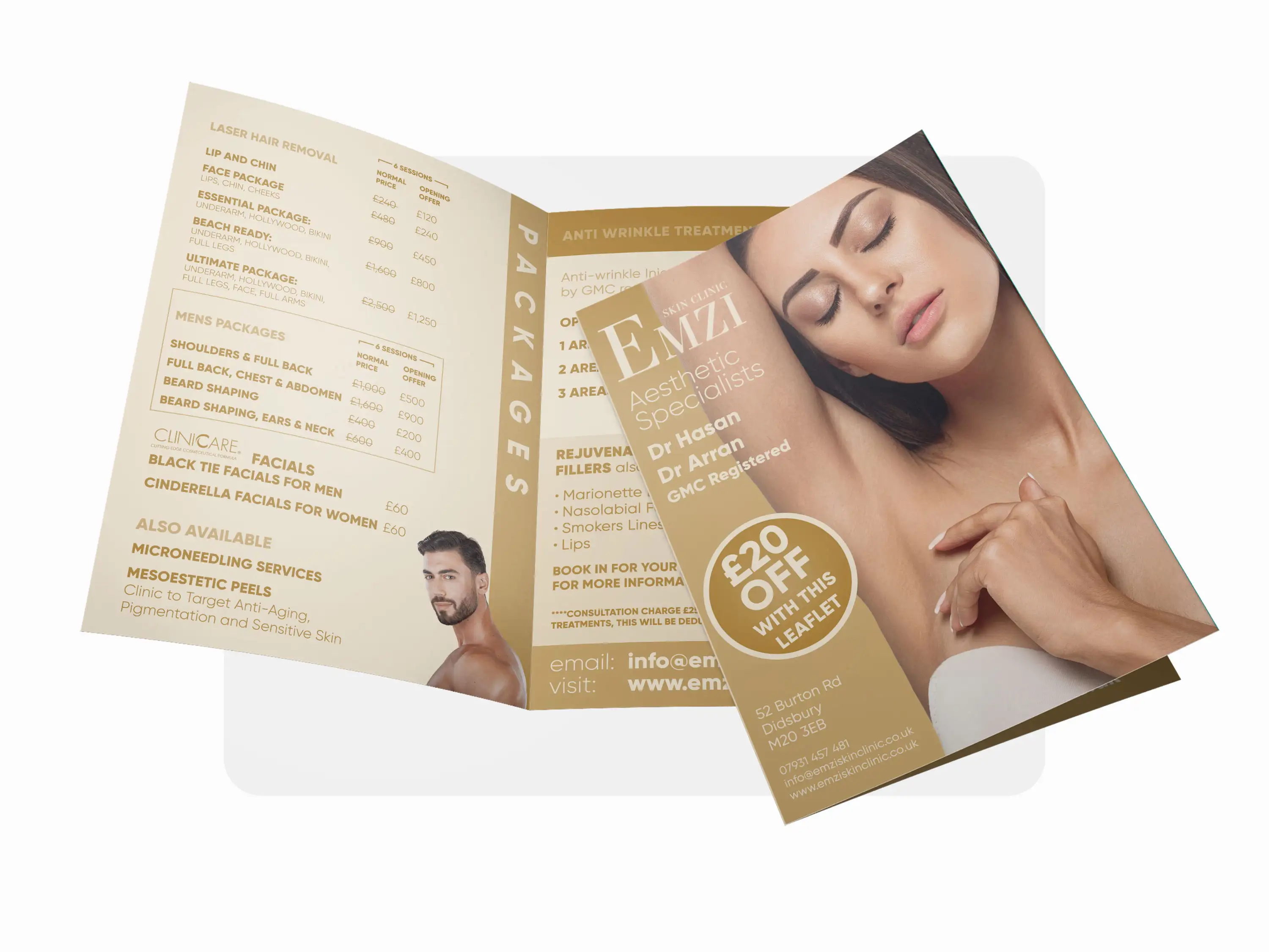 We offer a 100% money back guarantee with all of our designs. If the first draft of the leaflet design doesn't meet your expectations, we will refund your money in full.