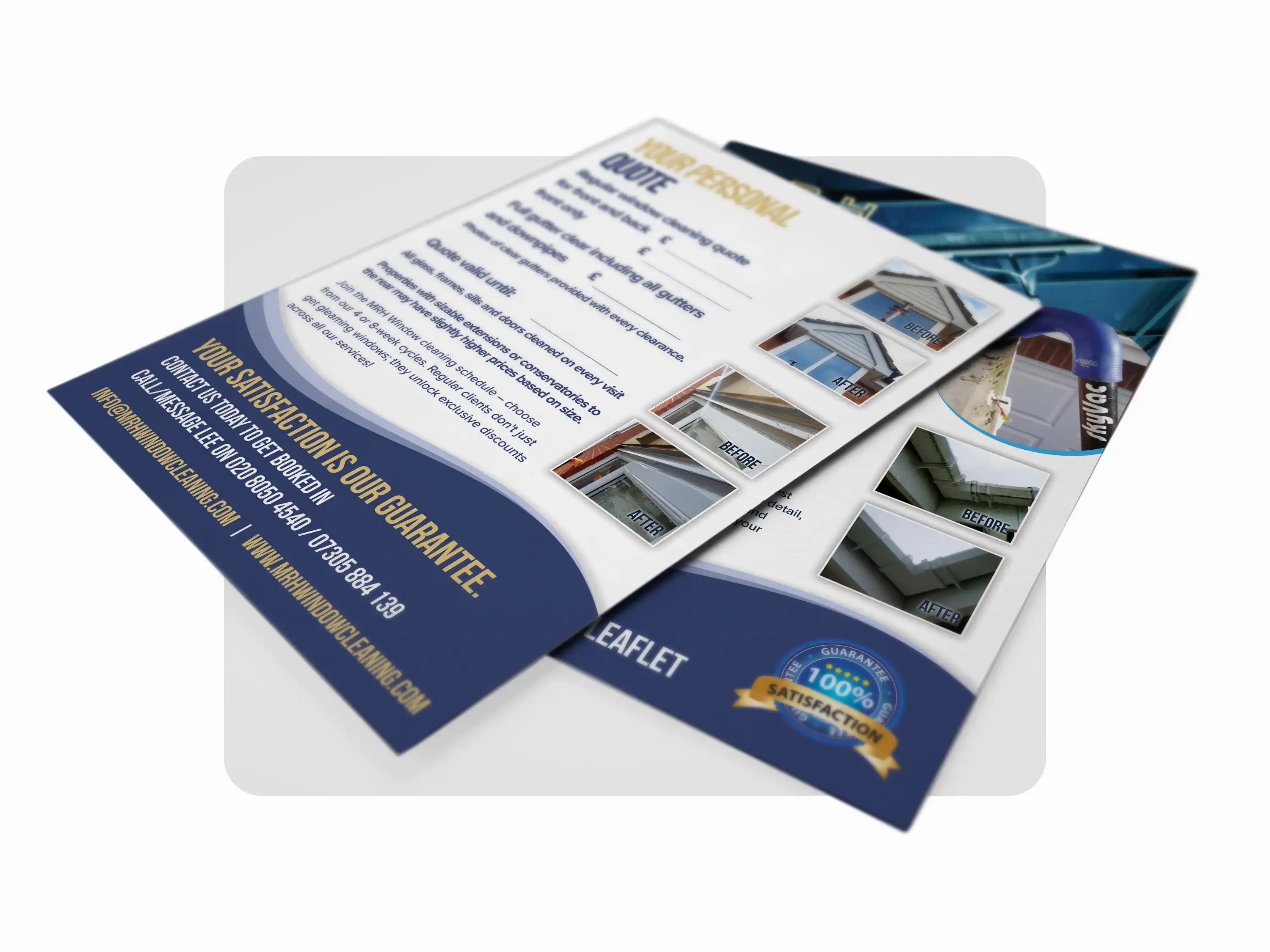 We offer a 100% money back guarantee with all of our designs. If the first draft of the leaflet design doesn't meet your expectations, we will refund your money in full.